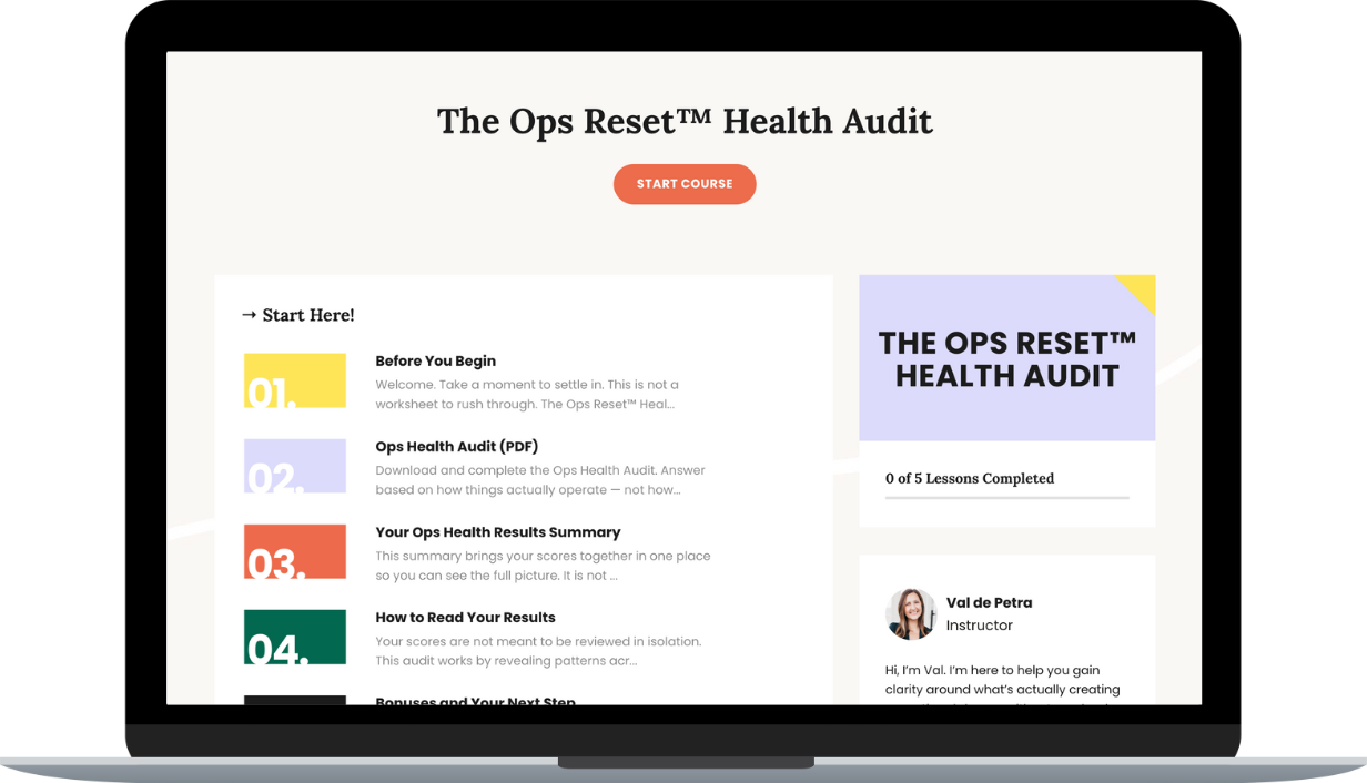 - A structured Ops Health Audit covering clarity, systems, leadership, and load